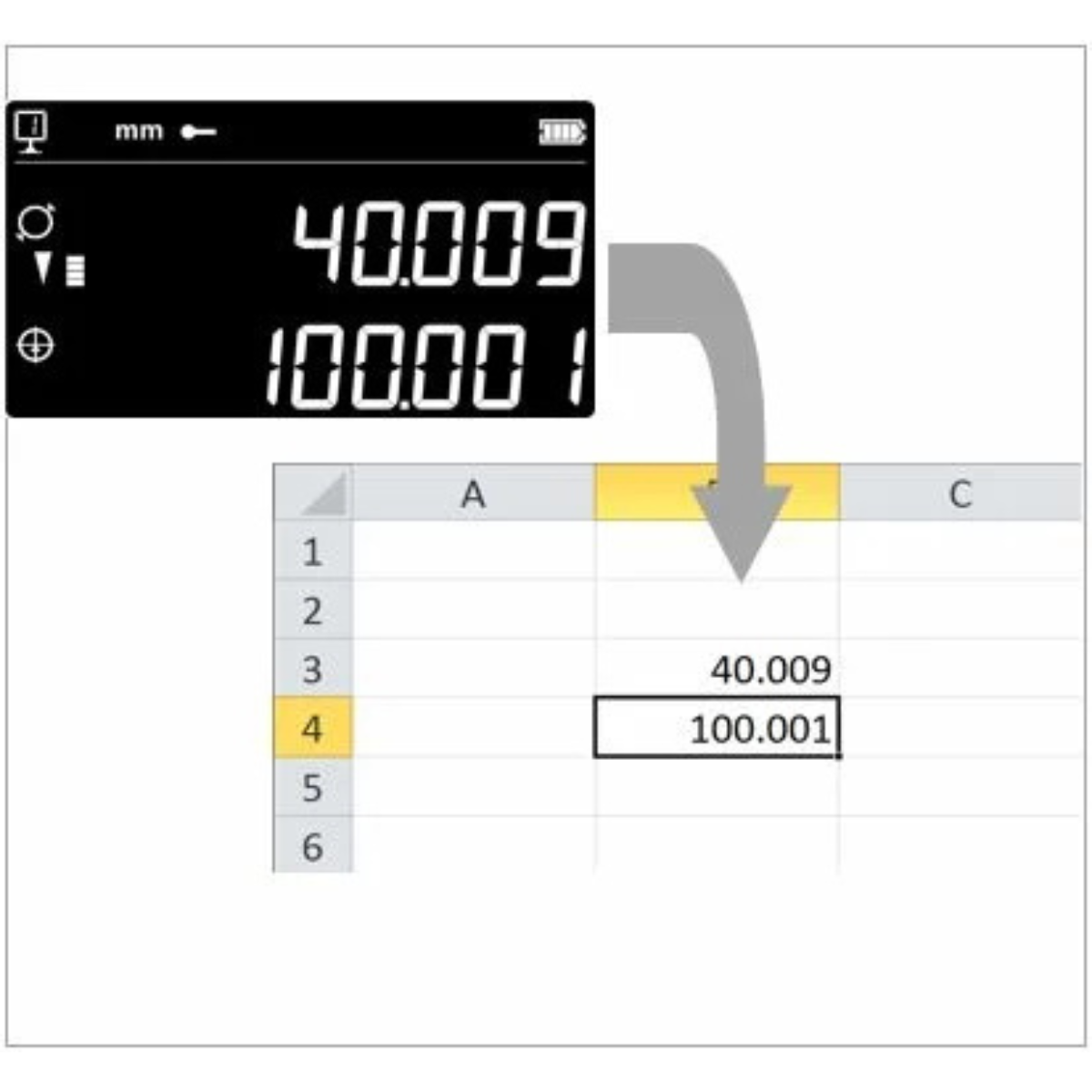 | Gama de medição com extensão | mm (pol.) | 724 (28) | 1028 (40) | 1427 (56) |